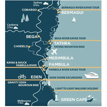 La cocina dispone de nevera, un horno y utensilios de cocina para cocinar. Los huéspedes pueden saborear platos australianos en el restaurante Nourish Wholefoods & Cafe, a 150 metros. Se puede llegar al aeropuerto Merimbula en 5 minutos en coche.
